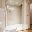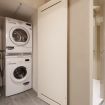 Al piano intermedio, accanto alla cucina, c'è la seconda camera da letto con bagno moderno e al piano terra, che è il secondo soggiorno, troverete un letto matrimoniale con un grande bagno con doccia e l'angolo con lavatrice e asciugatrice.