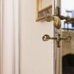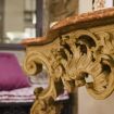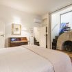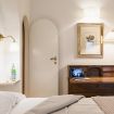 Il terzo piano prevede un'ampia camera da letto con elegante bagno in marmo rosso, elegante cammino antico-finto, scrivania vintage e stanza armadio in legno risalente al 1950.